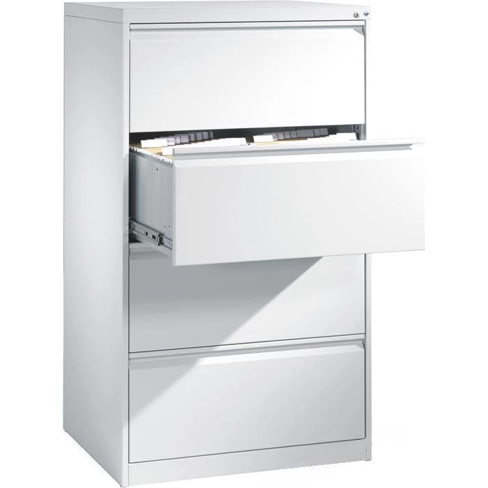 • Geschlossene Stahl-Schubladen mit integrierter durchgehender Griffleiste
