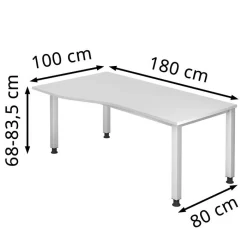 Hammerbacher Schreibtisch Q-Serie, Weiß, Höhenverstellbar, 180 X 68-83,5 X 100cm, Freiform