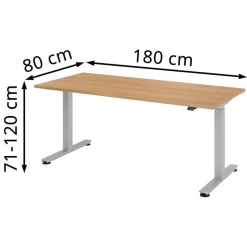 Hammerbacher Schreibtisch XMST 19, Eiche, Elektrisch Höhenverstellbar, 180 X 71-120 X 80cm