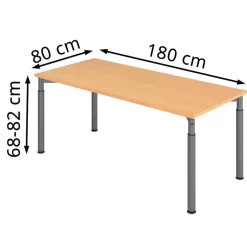 Hammerbacher Schreibtisch Y-Serie, Verstellbar, 180 X 68-82 X 80cm, Buche / Graphit