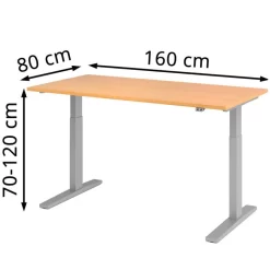 Hammerbacher Schreibtisch XMKA 16, Buche, Elektrisch Höhenverstellbar, 160 X 70-120 X 80cm