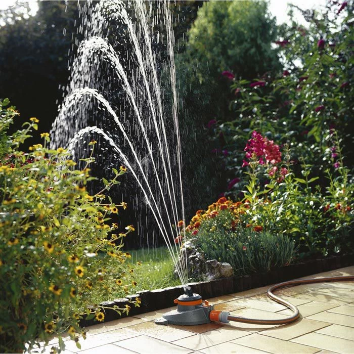 sonstiges: Teil- und Vollkreisregner, der zu bewässernde Sektor lässt sich beliebig zwischen 5° und 360° einstellen, Wurfweite und Wassermenge lassen sich individuell am Regner einstellen, Regnerfuß garantiert standsicheren Betrieb