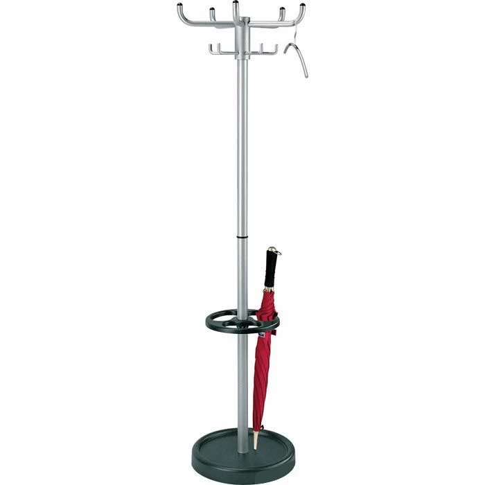 sonstiges: drehbare 5-armige Hakenkrone mit 5 Hut- und 5 Mantelhaken, Schirmhalter mit Tropfmulde, standsicher durch schweren Standfuß