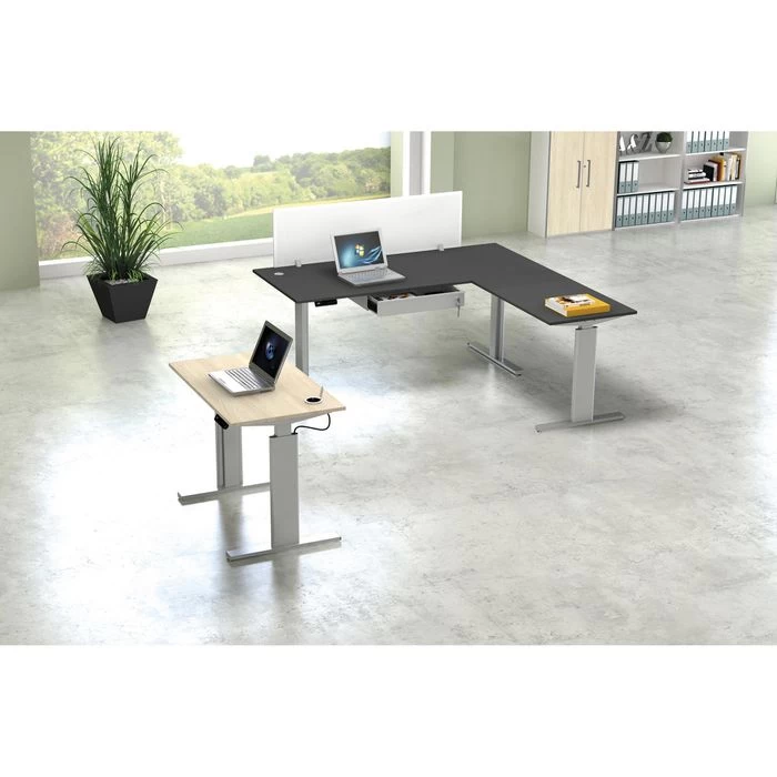 sonstiges: Elektroantrieb, 3 Motoren mit Sanft-Anlauf / Sanft-Stopp, 2-stufig, Hubgeschwindigkeit: 3,6 cm/Sek., Memory-Funktion mit Höhen-Anzeige, 4 Höhen-Positionen speicherbar, Nutzlast 115 kg dynamisch, 135 kg statisch, Teleskop-Seitenteile mit Stahlrohrtraverse, Quadratrohrgestell, strapazierfähige, melaminharzbeschichtete E1-Qualitäts-Spanplatte, hochwertige 2 mm starke ABS-Kanten