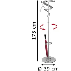 Kerkmann Garderobenständer Public Classic, 6277, Mit 24 Haken, Metall, Silber / Schwarz