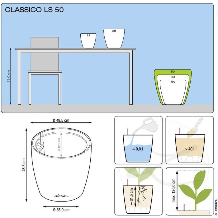 Lieferung: inkl. Pflanzeinsatz (Ø 42,5 x 31,5 cm), Wasserstandsanzeiger, Lechuza Pon
