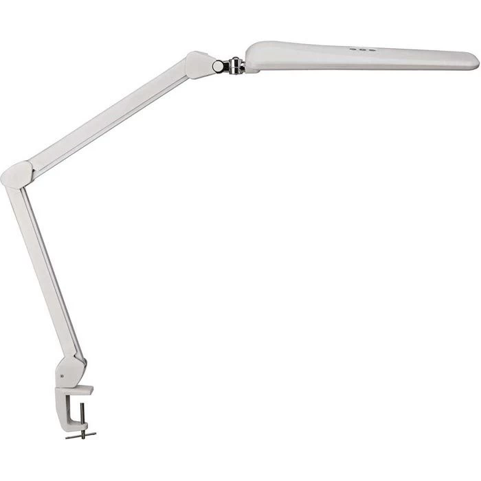 sonstiges: Metallarm 360° drehbar und 110° neigbar, dreidimensional verstellbarer Kopf, Bedienfeld am Leuchtenkopf, Blendschutz durch Streuscheibe, 1,7 m Netzkabel, Metallklemme zum Fixieren an Tischen bis zu einer Stärke von 63 mm