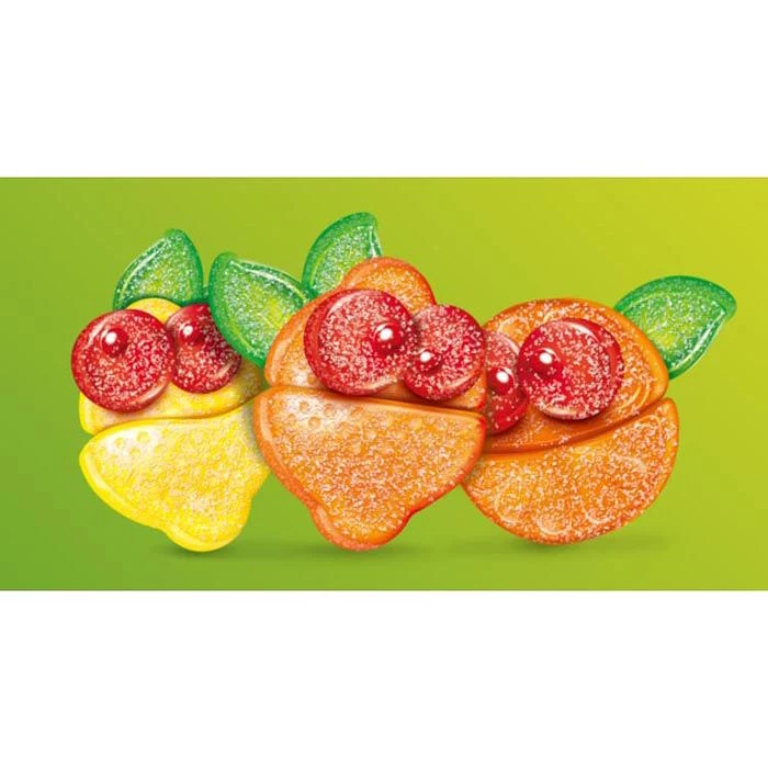 • In Banane, Grapefruit, Limette, Kirsche, Orange und Apfel