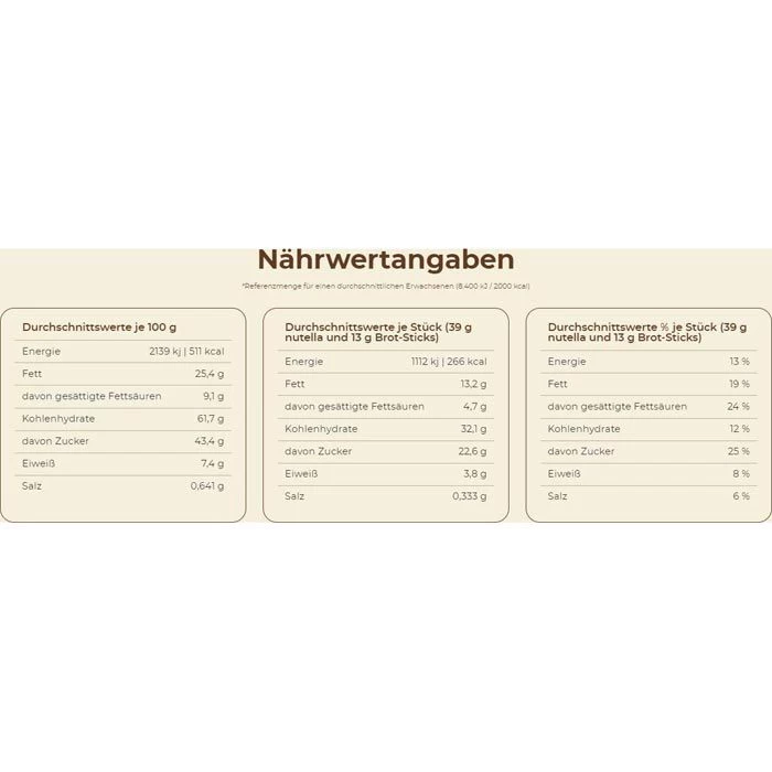 • Mit 13% Haselnüssen in der nutelle-Creme