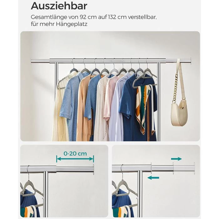 • Stabil und belastbar, ausziehbare Stange für noch mehr Platz