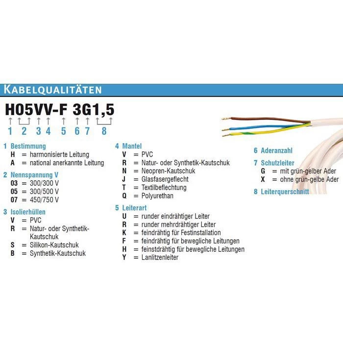 Kabeltyp: H05VV-F 3G1,5